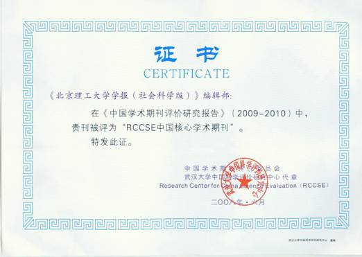 此次共1324種期刊進入核心學術期刊(2009—2010);其中796種人文社會科學綜合類期刊參加評價,128種期刊入選核心期刊。北京理工大學學報(社會科學版)被評定為人文社會科學綜合類核心期刊。
