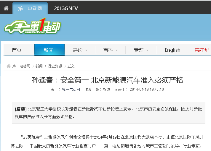 【第一電動網】北理工孫逢春談北京新能源汽車準入