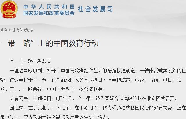 【國家發改委社會發展司網站】一帶一路”上的中國教育行動