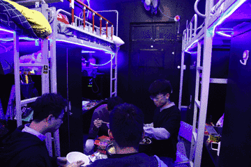 宿舍整體以黑色墻紙和灰色地膠作為大背景,輔以深藍色的霓虹燈,再加上高技術含量的科技產品進行支撐,很有科幻劇的味道。亞東對改造后的宿舍很滿意,他給自己評價為:“SIX! SIX! SIX!”。
