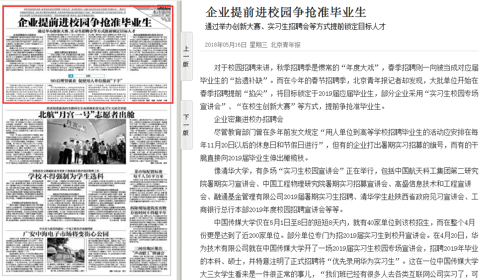 【北京青年報(bào)】北理工教師就企業(yè)校園招聘發(fā)表觀點(diǎn)