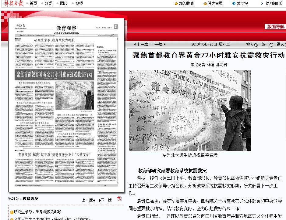 【科技日報(bào)】北理工師生為雅安地震災(zāi)區(qū)祈福