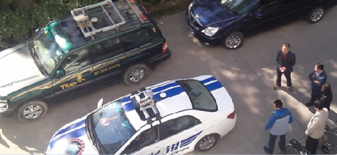 隨后,陳慧巖教授帶領二宮教授一行參觀了智能車輛研究所,并安排Ray無人駕駛汽車(該車獲得2013年“中國智能車未來挑戰賽”冠軍)進行全自主泊車表演。二宮教授、加藤副教授饒有興趣地坐在無人車后座上觀看。