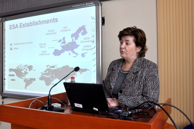 Tanja教授指出歐空局是歐洲國家組織和協調空間科學技術活動的機構。歐空局于1975年由原歐洲空間研究組織(ESRO)和歐洲運載火箭研制組織(ELDO)合并而成。其正式成員國有比利時、丹麥、法國、德國、英國、意大利、荷蘭、西班牙、瑞典、瑞士和愛爾蘭,非正式成員國有奧地利和挪威,加拿大為觀察員。歐空局的活動領域廣泛,涉及科學研究、人類太空飛行、地球觀察等諸多方面。在談及歐空局的計劃問題時,Tanja教授特別強調了合理回報原則(fair return principle),即各成員國依其各自的太空計劃,出資比例不盡相同。