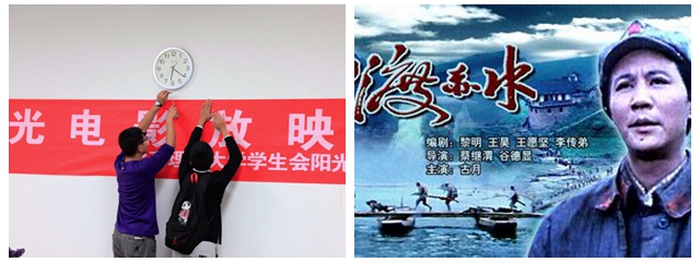 10月20日晚,陽光服務隊舉進行了長征電影——《四渡赤水》的放映活動。同學們被其中的驚險所觸動,為紅軍的安危而緊張。觀影結束后,同學們對長征精神有了更深一步的體會,對老一輩紅軍戰士們的艱難有了更多了解。