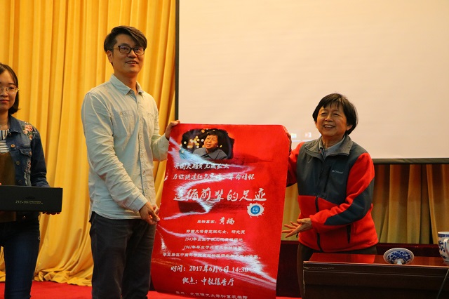 黃楠女士為計算機學院贈送了《黃克誠傳》,計算機學院將活動海報和具有北京理工大學特色的紀念品贈與黃楠女士留念。