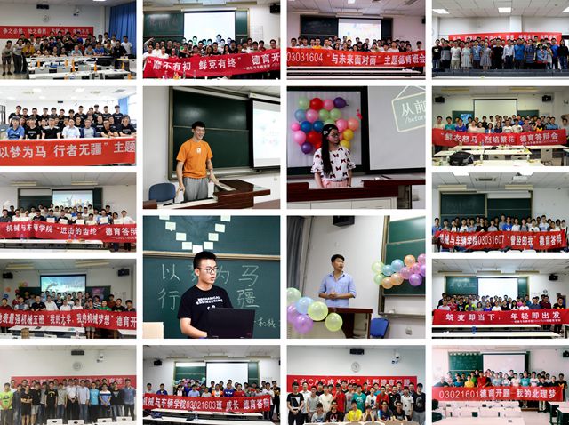 03021601、03021605班均以“夢(mèng)想”為主題召開班會(huì),指出年輕是可以編織夢(mèng)想的時(shí)光,同學(xué)們應(yīng)把握當(dāng)下,實(shí)現(xiàn)夢(mèng)想;03021602班以“當(dāng)CAD成為UG”為主題,其中CAD是二維制圖軟件,UG是三維制圖軟件,既有專業(yè)特色,又象征著成長(zhǎng)是一個(gè)人逐漸立體和成熟的過程;03021603、03021604班均以“期待、拼搏”為主題,體現(xiàn)了同學(xué)們渴望拼搏、追逐夢(mèng)想的志愿;03021606班以“進(jìn)擊的齒輪”為主題,并在班會(huì)中為每一位同學(xué)頒發(fā)班級(jí)中其他同學(xué)親手設(shè)計(jì)的獎(jiǎng)狀,極具創(chuàng)意;03911601班以“以夢(mèng)為馬 行者無疆”為主題,提出了“以夢(mèng)為馬,行者無疆,虛懷若谷,青春永駐!”的口號(hào),強(qiáng)調(diào)心懷夢(mèng)想,激勵(lì)自身奮斗。