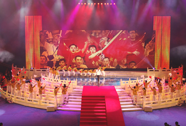 文藝演出的第四個節目是《為你榮光》,由香港著名歌星謝霆鋒演唱歌曲,我校同學擔任伴舞,其精彩的表演贏得了現場觀眾的陣陣歡呼。